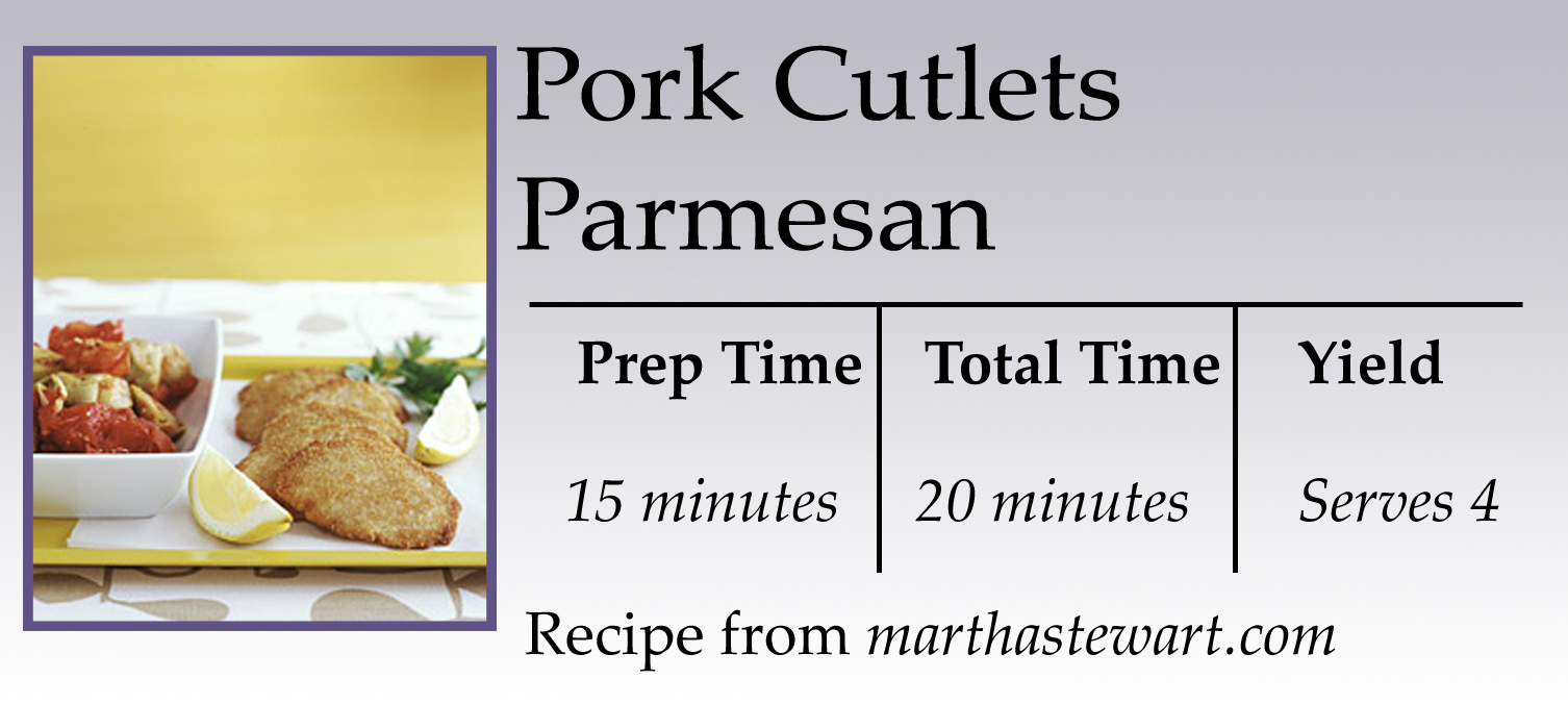 - In a shallow bowl, beat egg whites with 1 tablespoon water. In another bowl, combine breadcrumbs and Parmesan. Place all-purpose flour in a third bowl. Season pork with salt. Dip pork in flour, then in egg mixture. Dredge in breadcrumb mixture; pat it in.